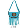 Ladies Suede Cowhide Western Style handbag in Red with beads, bones, and fringe.